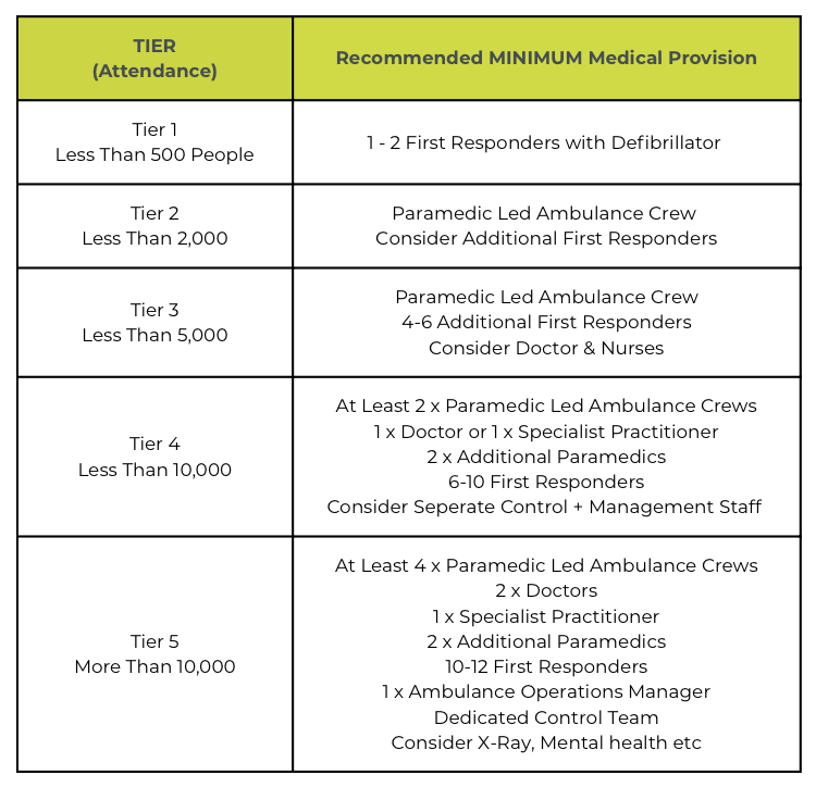 Local authorities, licensing bodies, and ambulance services often require a dedicated medical plan delivered by qualified professionals such as paramedics, ambulance technicians, or event medical teams. This ensures your event is compliant with health and safety regulations and the guidance set out in documents like the Purple Guide.